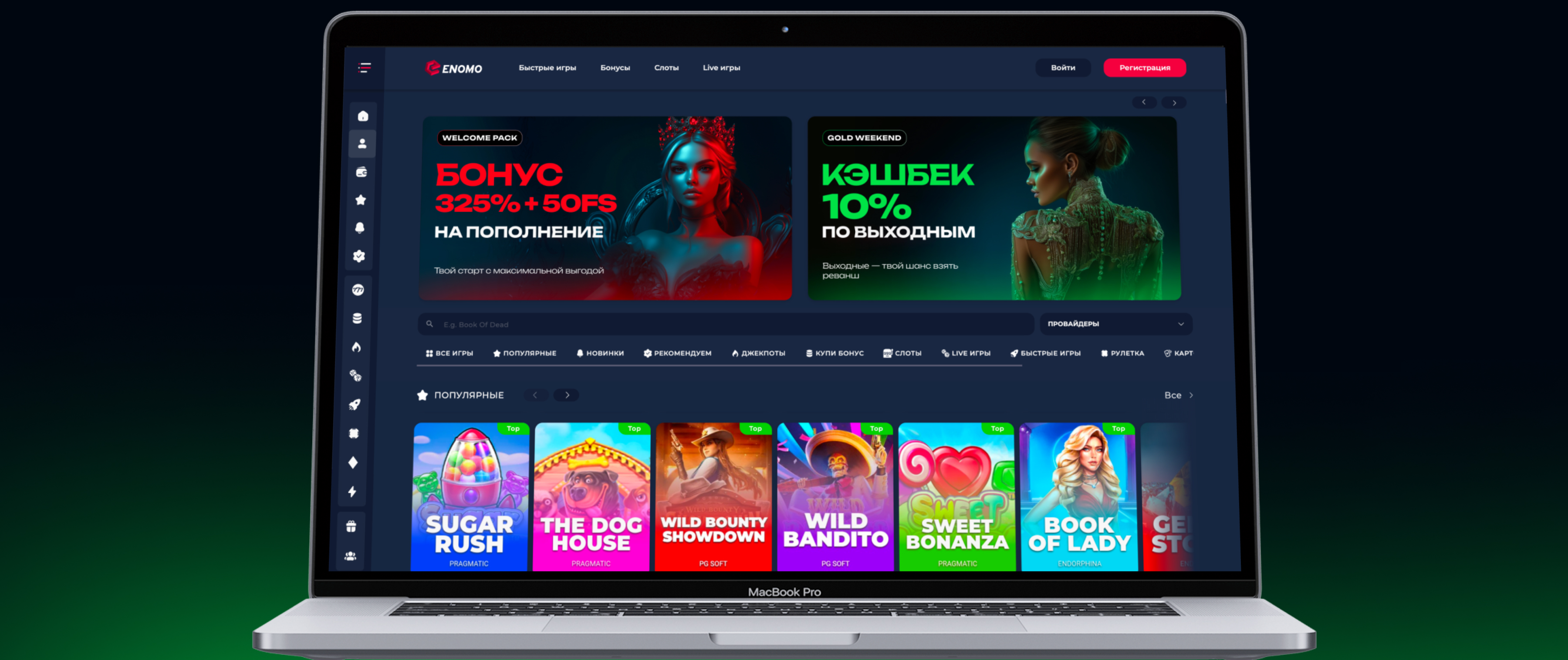 Игрокам предлагается более 18000 лицензионных слотов в казино Еномо от известных провайдеров. Присутствует коллекция из Live, Слотов и Быстрых (Crash) игр.